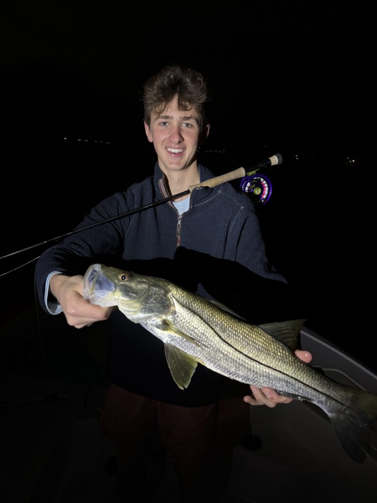 Heavy winds this morning but it didn’t stop Doug & his son Henry. Below is Henry with his 1st Snook
